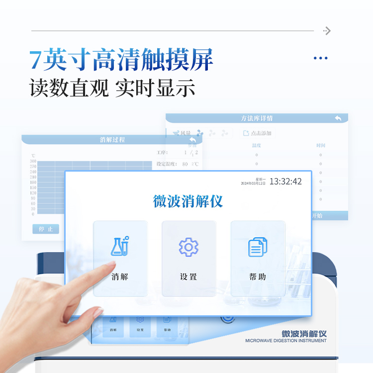 微波消解仪是一种用于样品前处理的设备,通过微波加热技术对样品进行快速、有效的消解。该仪器广泛应用于食品、环境保护、疾病控制、质量监督、商品检验、科研院所等领域,特别适用于各种样品的酸消解和溶剂萃取。
